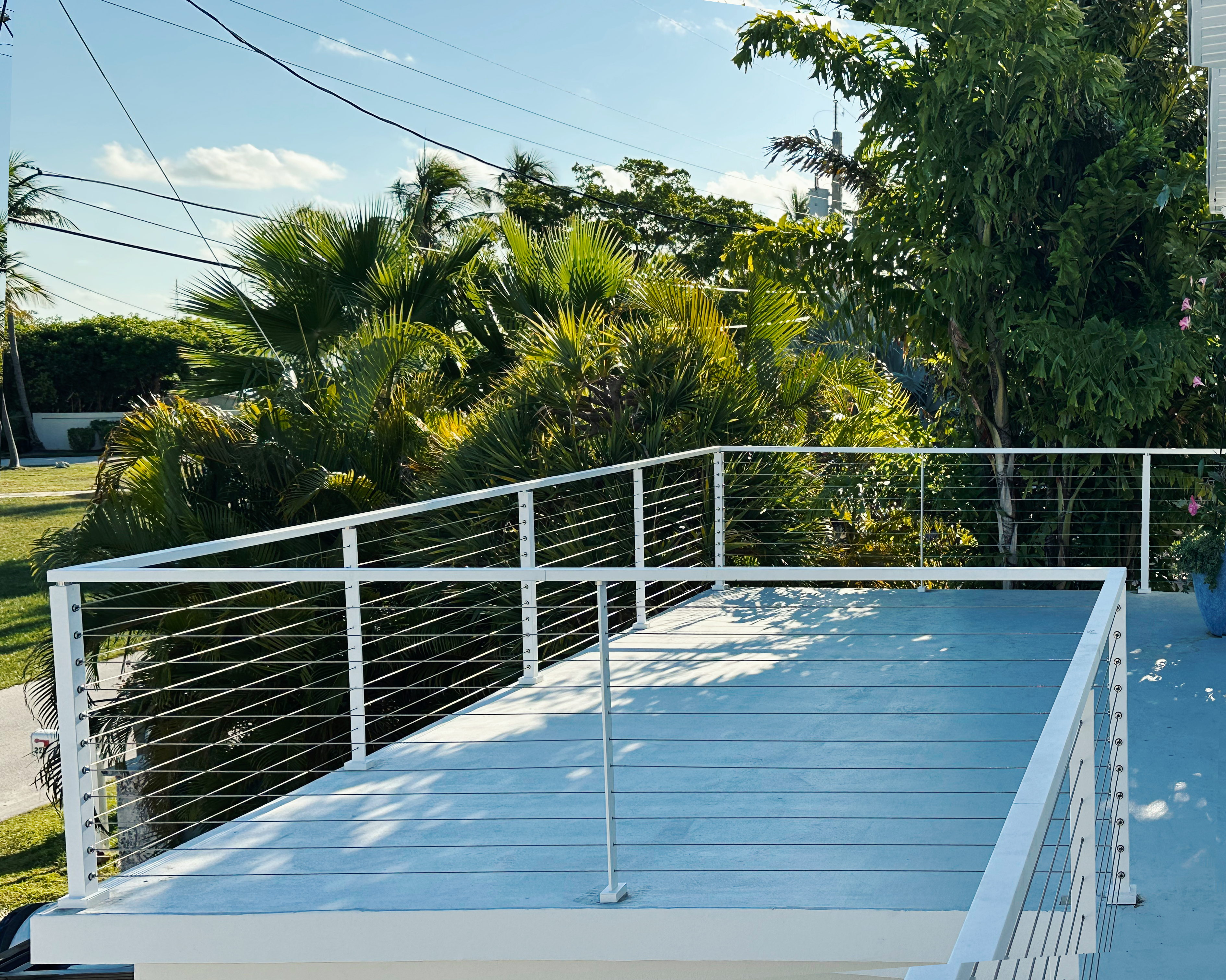 - Unobstructed Views: The minimalist design of cable railing maximizes views of the ocean or landscape without the clutter of traditional wood or glass, making it perfect for Florida’s scenic waterfront properties.